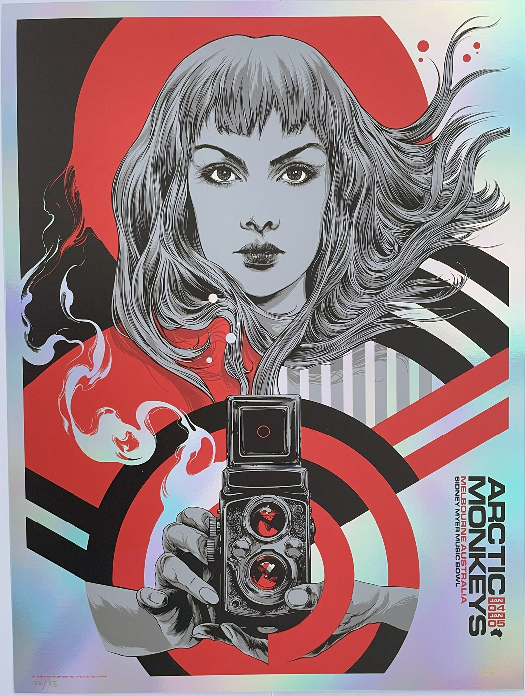 Arctic Monkeys 2023 Red Rainbow Foil concert poster by Ken Taylor